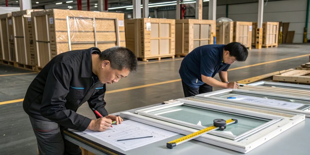 Each finished product undergoes strict inspection before export. Our workers carefully test, clean, and package aluminum windows and doors in secure wooden crates, ensuring safe delivery and long-lasting performance for customers worldwide.